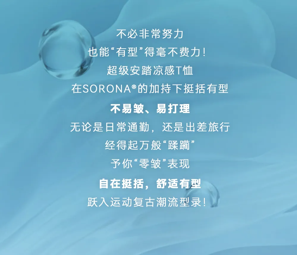 SORONA®是一项突破性的新型生物基聚合物解决方案,其核心原料来自每年可重复生长的植物。SORONA®不仅具有符合潮流趋势的可持续发展和环保主题,而且可以为纤维带来多种功能的优良特性。用SORONA®原料制成的纤维的“多功能性”为面料和服装设计师提供了更大范围的设计自由!
