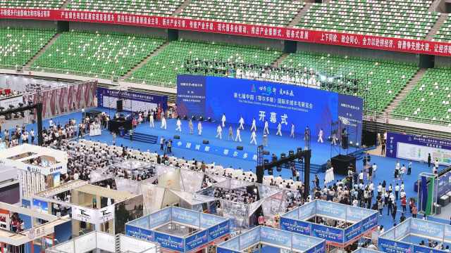 图为第七届中国(鄂尔多斯)国际羊绒羊毛展览会精彩现场
