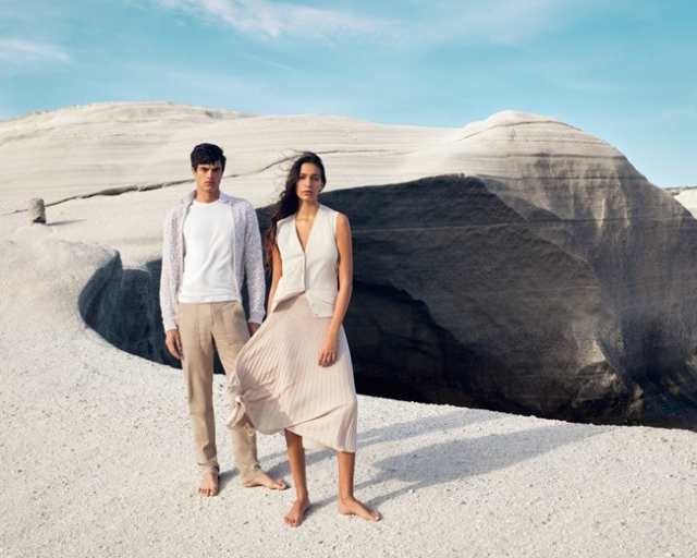 拍摄取景地选在希腊米洛斯岛,纯白的石灰岩地貌构筑出天然、真实而纯净的背景。这一极简却富有张力的场景,既呼应地中海之美的根源,又暗合希腊神话的原始力量。模特们如石刻雕塑般自在游走,刚柔并济的身姿与自然环境浑然一体。系列的中性色调与山海大地交融共生,在时装、自然与材质之间建立深层对话。