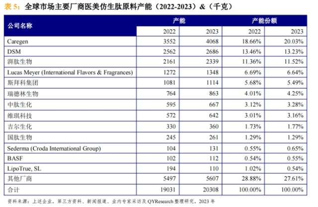 (2023全球医美仿生肽原料主要厂商市场地位 数据来源QYResearch)