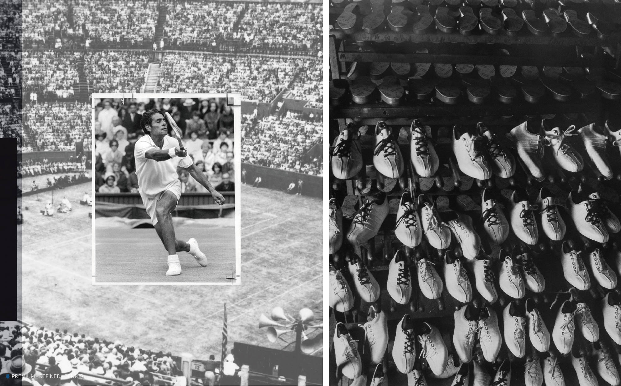 网球场上有独一份的运动准则,需要运动员不断急停急起,灵活地应对挑战,这对运动鞋的支撑和稳定性有着极高要求。瑞士兄弟从故乡的滑雪靴设计中汲取灵感,以五道杠结构和D-Ring系带系统为核心设计元素,并用柔韧的优质皮料代替当时主流的帆布面料,稳稳承托住运动员在球场上剧烈的侧向移动,打造出全球第一双真皮网球鞋,同时也是网球史上具有里程碑意义的CLASSIC 66 鞋款。