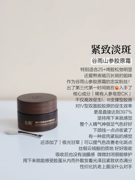 榜一:谷雨山参胶原霜:防垮、紧致、淡斑三效合一