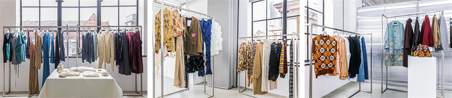 此外,SEIYA NAKAMURA 2.24 旗下多个位列巴黎时装周官方日程的品牌也将秀场作品搬到了预览现场。CAMPERLAB 2025 秋冬系列再度颠覆传统美学框架,以肌理质感与解构裁艺为核心,将成衣、配饰及鞋履产品线拓展至全新维度。Courrèges 2025 秋冬女装系列由艺术总监 Nicolas Di Felice 以一个直觉性的动作为起点,透过布料缠绕与斜向轨迹,捕捉转瞬即逝的动态美感;而 2025 早秋女装与秋冬男装系列则以圆环与摩托元素为视觉线索,延续了品牌一贯的几何构建美学。MARINE SERRE 2025 秋冬系列「HEADS OR TAILS(双面叙事)」标志着 Marine Serre 个人与创作的双重转折,剪影愈发优雅利落,糅合力量感与性感张力。Mame Kurogouchi 2025 秋冬系列继续探讨“形”这一主题,设计师黑河内真衣子(Maiko Kurogouchi)继续寻求具像化这些拥有独特魅力的“形”,色调上则以漆器为灵感,多为深红与猩红色调。Maison MIHARA YASUHIRO 2025 秋冬系列以悖论视角重构品牌三十年核心理念,聚焦对“定制剪裁”的当代再诠释,同时推出新鞋款 OLIVER,以及副线“General Scale.”与意大利品牌 AUTRY 的合作系列。